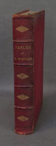 [Doré].— La Fontaine (Jean De). Fables. Avec les dessins de Gustave Doré. Paris, L. Hachette et Cie, 1868 ; gr. in-4, demi-chagrin vieux rouge, plats de percaline rouge, dos à nerfs orné, [Rel. de l'époque], frottements aux mors et aux...