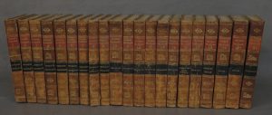 demi-basane fauve, dos longs ornés de motifs dorés, pièces de titre rouges et noires, [Rel. de l'époque], mors fendus, accrocs aux coiffes. Série complète des 21 volumes, couvrant la période 1789- 1815. Elle continet 9TABLEAUX IMPRIMÉS REPLIÉS. il existe une deuxième série de discours, dont deux volumes seulement ont été publiés, et qui renferme les sessions de 1815 et 1819. Annotation manuscrite contemporaine à propos de l'auteur. Tourneux i, 571 .