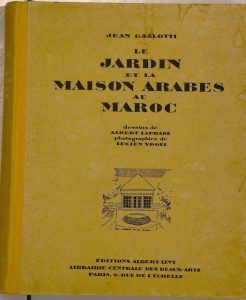 édition. Paris, Albert Lévy, [vers 1 926] ; 2 vol. in-4, reliure d'édition, dos toilé jaune imprimé en blanc et en noir sur le 1 er plat. Orné de 1 36 HÉLIOGRAVURES TIRÉES EN SÉPiA. Bel ex. de cet ouvrage de référence, documentation incontournable par le dessin et la photographie sur la construction et la décoration de la maison et du jardin marocains.