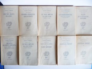 Larbaud (Valery). Œuvres Complètes. Paris, Gallimard, 1950-1955 ; 10 vol. grand in-8, brochés, en grande partie non coupé. Exemplaire numéroté sur papier vergé des papeteries Navarre de Voiron.