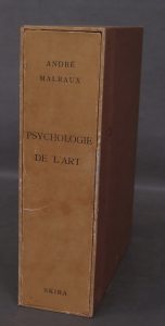 Malraux (André). Psychologie De L 'Art. La Création artistique.- La Monnaie de l'absolu.- Le Musée imaginaire. Paris, Albert Skira, 1948-1950 ; 3 vol. in-4, brochés, couvertures illustrée rempliées, sous chemise et étui. TRÈS NOMBREUSES...