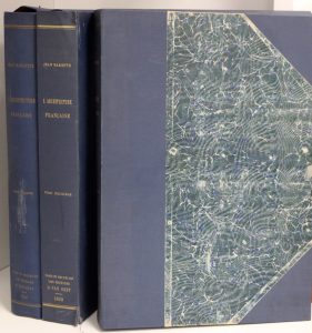 Endroits de France, Bâtis nouvellement par les plus habits Architectes et levés & mesurés exactement sur les lieux. Paris, Bruxelles, G. Vanoest, 1927 ; 3 vol. in-folio, chemises-portefeuille d'éditeur gris-bleu à rabats, fermeture à lacets, dos lisse titré et doré. Orné de 562 planches, plusieurs à double page. Réimpression de qualité, exemplaire en très bonne condition, complet de toutes ses planches, en bon tirage et sans la moindre rousseurs.