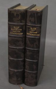 premiers plats de couverture conservés, [Rel. du temps], dos passés, quelques très légers frottements. PORTRAIT-FRONTISPICE ET 12 FIGURES HORS TEXTE GRAVÉS SUR CUIVRE .— FRONTISPICE ET 12 FIGURES HORS TEXTE GRAVÉS SUR CUIVRE .Première édition illustrée, très recherchée. Le premier volume est un des exemplaires du tirage courant sur papier vélin fort avec les figures tirées sur papier vergé de Hollande ; le second est l'un des 1 00 exemplaires numérotés sur papier du Japon, avec une suite des eaux-fortes et héliogravures sur papier vélin avec la lettre (les figures sur Japon sont avant la lettre). Super ex-libris A. V. F. Antoine. Rares piqûres aux hors-texte (sauf ceux sur papier du Japon). A échappé à Monod. Vicaire, 735 & 736.