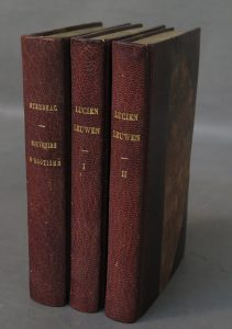 doré au dos, tête dorée, couverture et dos conservés, [J. Kauffmann - F. Horoloir]. XXIII, 320 p. Édition originale posthume. La couverture porte, comme souvent, la date de 1893, comme les dix exemplaires sur Hollande. Ce texte inachevé, écrit en 1832, demeuré inédit, regroupe des souvenirs épars qui racontent la vie parisienne de Stendhal, un peu dissolue, souvent solitaire, pendant la Restauration, jusqu'à la révolution de 1830. Clouzot, p. 258. Vicaire, I, 461 .— JOINT, du même : • LE ROUGE ET LE BLANC. (LUCIEN LEUWEN). Roman posthume (1834-1836). Paris, Éd. Bossard, 1829 ; 2 vol. in-12, même reliure, tête dorée, couvertures et dos conservés, [J. Kauffmann - F. Horoloir].