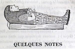 ÉDITION ORIGINALE. Perrot, ancien sergent-major de l'empire, devint par hasard archéologue. Il fut chargé de fouilles dans le Gard, fit plusieurs voyages en Italie et fonda son propre musée d'antiquités auxquelles il ajouta "une des plus belles Momies qui aient été apportées en Europe" (p. 7). Couverte d'hiéroglyphes, il se lança dans sa traduction, sur base des premières livraisons du Dictionnaire de Champollion, pour conclure "Nous devons le dire, là où tous les auteurs ont cru voir des dieux, nous ne voyons que des constellations ou des vertus personnifiées" (p. 22). Complet des 5 lithographies (2 dépliantes). Peu courant.