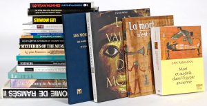 - En français par Dunand et Lichtenberg (2 ouvr. dont Momies et mort en Ég., 1998), Leca, Goyon (autopsie d'une momie), Assmann (Mort et au-delà dans l'Ég. ancienne, 2003), Hawass (Vallée des momies, 2000), El Mahdy (Momies, mythe et magie, 1990), La mort n'est pas une fin (expo Arles, 2003), Momies d'Ég. aux MRAH à Bruxelles (1999), "La momie de Ramsès II. Contribution scientifique à l'égyptologie" (sous la dir. de Balout et Roubet, 1985. Études radiologiques, endoscopique, fongiques de la momie, avec les végétaux trouvés - parure florale, embaumement, prélèvements-, la chevelure de Ramsès, etc., ainsi que la mise en oeuvre pour sa sauvegarde).