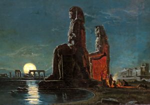 Copie contemporaine d'après le tableau de Werner (c. 1872) figurant le site des colosses à Thèbes.