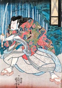KUNIYOSHI, Ichiyusai.- L' acteur Nakamura Utaemon brandit un sabre. Éditeur Kawasho.