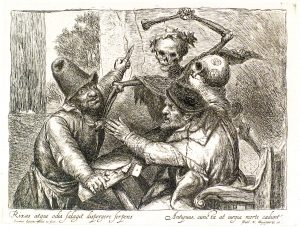 WIJNGAERDE, Franciscus van den (1614-1679).- Joueurs de cartes se disputant en présence de la Mort [d'après Joannes LIEVENS (1607-1674)].