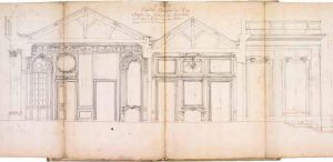 Recueil de 6 plans à l’encre de Chine avec retombes, tirés par le cabinet de Ange-Jacques Gabriel (), représentant les souterrains, l’appartement du roi, le salon et la pièce des buffets du petit château de Choisy, pavillon construit à la demande de Louis XV à côté de l’ancien château bâti par Mansard... Chacun de ces plans porte la mention « Envoyé le ... à Mr Billaudel ». Ce dernier était contrôleur à Choisy, et ce depuis 1752. Il s’occupa notamment du doublement en épaisseur du château. Le corps du petit château fut entrepris en 1754 et achevé en 1756. Il était composé de l’appartement de Louis XV, de celui de la Pompadour, des salles à manger, dont celle de la fameuse table mécanique, et des pièces de service, en entresol. Les souterrains étaient occupés par les cuisines. Les devis concernant ce chantier sont conservés aux Archives nationales. Nous avons localisé un autre recueil de Gabriel constitué entre autres de plusieurs dessins se rapportant au château de Choisy. Il figurait au catalogue d’une vente qui eut lieu le 28 novembre 1977 à l’Hôtel Drouot. Dimensions : 370 x 264 mm. Exposition : Strasbourg (?), avec étiquette d’inventaire. Provenance : Hippolyte Destailleur (Cat., 28 novembre 1894, n° 522, « Dessins originaux de l’architecte Gabriel […]. Ces dessins sont d’autant plus importants que ce château a été détruit. »). Fels (E. de), Ange-Jacques Gabriel, Premier Architecte du Roi, 1924, pp. 194, 199 et 200, avec reproduction d’un plan « Coupe sur le salon et sur le vestibule du Petit Château, Dessin de Gabriel ».