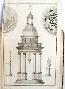 Très intéressant traité de menuiserie et ébénisterie qui aborde aussi le travail du fer et des pièces d'architecture. Illustré de 96 planches, certaines sur doubles pages ou dépliantes, figurant des essences de bois (8 pl. rehaussées), outils, mécanismes de tours, machines, etc., de 2 bandeaux historiés et de 2 vignettes de l'éditeur identiques représentant un navire. Bergeron (1737-1805) compléta l'ouvrage dans les éditions suivantes au point d'en être considéré comme l'auteur et non plus Salivet (1737-1805).