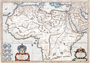 Carte de l'Afrique du Nord jusqu'aux sources du Nil. Avec sceaux romains. Extraite de l'"Atlas Novus" par Janssonius.
