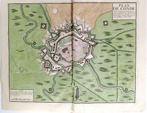 FER, N. de.- La France [...]. P., 1725 (rehaussée, bords abîmés avec pet. manques).-- BAILLIEU, G.- La Provence dévisée en ses vigueries et baillages. P., 1707 (rehaussée, bords effrangés, trou de vers marg.).-- [Idem].- Canton de Basle (rognée, trou de vers marg., coin déchiré).-- [Idem].- 4 plans de villes : Condé (rehaussé, large perforation), Douai, Dunkerque et Lille (fendu).-- CRÉPY.- Nouveau plan routier de la ville et Faubourg de Paris. P., 1750 (rognée).-- Plan de la ville d'Aire assiegée par les alliez [...]. La Haye, Anna Beek, s.d.