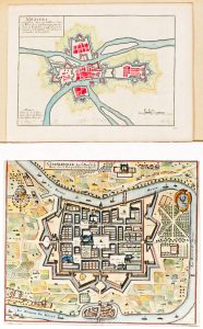 Cartes (2) dont une "Carte routière" extraite du "Petit atlas national des départements de la France".-- Plans (11) de Charleville (4 identiques) et Mezières (3 id.) dont 1 éditée par Antoine de Fer.-- Vues topographiques (20) dont 3 id. par Johannes Peeters, 2 extraites de "France pittoresque" par Abel Hugo (1835), 5 extraites de "La France illustrée" par Victor Adolphe Malte-Brun et d'autres d'après les dessinateurs Savard, Otto von der Howen, Gérard et George Arnald (1763-1841), gravées par Claude Fessard, Charles Ransonette et François Denis Née.