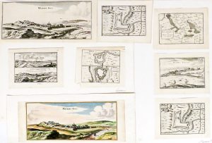 Cartes (2 identiques).-- Plans (7) dont 5 id. et 1 gravure avec 2 plans.-- Vues topographiques (13) dont 9 id. par Johan Peeters (1 rehaussée à l'aquarelle).