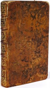 Rel. de l'époque : pleine basane mouchetée, dos fleuronné doré à nerfs, tr. rouges (rel. frottée, mors part. fendus, coiffe sup. manquante, pet. épidermures, coupes et coins émoussés dont deux fortement, galeries de vers aux gardes).