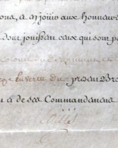 Mi imprimé mi écrit (encre passée rendant la lecture difficile), sur parchemin, 24 x 32 cm, signé "Loüis" et Devoyer Argenson, sans sceau.