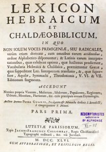 GUARIN, Pierre.- Lexicon hebraicum et chaldaeo-biblicum [...]. Lutetiae Parisiorum [ Paris], typis Jacobi-Francisci Collombat, 1746.