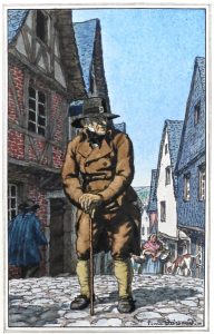 ENRICHI d'une AQUARELLE ORIGINALE, 20,5 x 12,5 cm, figurant une vieil homme dans une rue animée (composition non retenue pour le hors-texte de la p. 77), signée à l'encre dans le champ et dédicacée (sans nom) au stylo : "Avec les meilleurs compliments de Pierre Brissaud".
