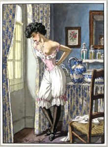 ENRICHI d'une AQUARELLE ORIGINALE, 14,5 x 10,5 cm, figurant une femme en légers dessous, signée et dédicacée "Pour Monsieur Achille Lefèbvre, très cordialement".