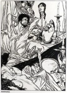 Second issue (1st issue : 1907) of the black satirical plates and vignettes caricaturing the politics and clergy. Introduction by the Scottish painter James Guthrie. Spare (1886-1956) influenced the symbolism and the artistic decadence of Art nouveau. Work printed at 300 copies for sale in England and United States.