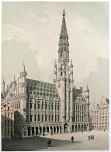 TOME I EN ÉDITION ORIGINALE de cette publication estimée consacrée aux principaux monuments gothiques de Belgique avec le texte de Félix Stappaers. Les 30 lithographies, en 3 ou 4 tons sur fond teinté, figurent églises, beffrois, hôtels de ville, etc., et sont imprimées par Simonau et Toovey d'après de nombreux dessins pris sur le vif par Stroobant (actuellement conservés à la KBR). Ouvrage sorti en livraisons en 1852, publié en 1854 et réédité en 1856 (avec un choix de 36 vues) puis en 1870.