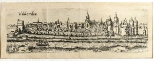 IHFZ Vue panoramique de la ville de Vilvorde (qqs plis vertic., pet. lacune restaurée), extraite des "Antiquitates illustrissimi ducatus Brabantiae [...]". Eau-forte (petite lacune comblée, faibles plis).