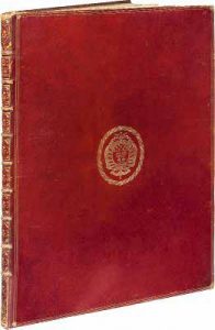 Legendre (J.-G.). Description de la place de Louis Xv que l’on construit à Reims... Paris, Prault, 1765, in-folio, maroquin rouge, filets dorés autour des plats, armes au centre, dos à nerfs orné, tranches dorées (Derome).