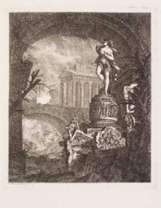 Jean Laurent Le Geay (1716-1786) séjourna à Rome entre 1737 et 1742, où il participa avec Piranèse à la réalisation de vedute pour l’abbé Venuti. Un titre gravé et 4 suites, chacune formée de 6 pièces inspirées des compositions de Piranèse. Un premier tirage des planches fut fait en 1767-1768 à Londres, puis un second à Paris en 1770 après que Le Geay eut retravaillé ses cuivres. L’ensemble a été monté sur onglet. Le tirage est de qualité. Marge extérieure du titre restaurée. Initialement, l’exemplaire devait contenir un plus grand nombre de suites. Dimensions : 273 x 212 mm. Erouart (G.), Jean Laurent Le Geay, un piranésien français dans l’Europe des Lumières, n° 127-150 ; Guilmard, p. 238, n° 55 ; Katalog Berlin, 4182 ; Pérouse de Montclos (J.-M.), Boulée, 1969, p. 41 ; Wunder (R. P.), “The Spread of ‘Piranesism’ to France Through Le Geay and Challe”, in Piranèse et les Français. Paris, Laget, 1978, pp. 553-562  ; Barrier (J.), Les Architectes européens à Rome, pp.et 110.