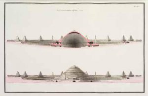 [Prix De L’académie Royale D’architecture]. Prix d’architecture proposés, jugés et décernés par l’académie, au nombre de 115 planches lavées. S.l., Frères Gay, 1792, in-folio, maroquin rouge, roulette dorée autour des plats, dos lisse