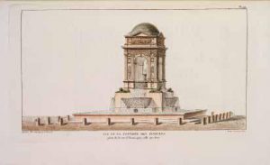 dos lisse orné, roulette intérieure dorée, tranches dorées (reliure de l’époque). ÉDITION ORIGINALE et PREMIER TIRAGE. Les fontaines à Paris. En 1400, Paris ne comptait que six fontaines ; à la fin du XVe siècle, dix-sept étaient en service. Cent ans après, leur nombre n’était passé qu’à dix-neuf et, si au début du XVIIe siècle, on en comptait vingt-neuf, il fallut attendre la mise en service des pompes Notre-Dame en 1673 pour voir leur nombre atteindre trente-huit. La population parisienne, directement ou par l’intermédiaire de porteurs d’eau, s’approvisionnait à ces fontaines ; la Seine et de très nombreux puits continuant toutefois à être utilisés jusque sous le Second Empire. Recevoir l’eau à domicile par une canalisation était un privilège qui le resta jusqu’aux travaux du baron Haussmann. Les eaux étaient fournies par les sources du Pré-Saint-Gervais et de Belleville, par celles de Rungis, et encore par les pompes hydrauliques du Pont-Neuf (« La Samaritaine ») et du pont Notre-Dame. Sous le règne de Louis XVI, la création des pompes à feu de l’Alma et du Gros-Caillou par les frères Périer permit d’augmenter le nombre des fontaines publiques. Sous la Révolution, la Convention fut, comme en bien d’autres domaines, fatale aux adductions d’eau et aux fontaines. Napoléon Ier reprit sur des bases nouvelles, c’est-à-dire avec un projet ambitieux, l’approvisionnement en eau de Paris. En 1806, après divers travaux de restaurations et des créations nouvelles, cinquante-sept fontaines sont en service  : vingt-neuf sont alimentées par la pompe Notre-Dame, trois par la Samaritaine du Pont-Neuf, dix par les pompes de Chaillot, cinq par celles du Gros-Caillou, six par les sources Belleville et du Pré-Saint-Gervais, quatre par l’aqueduc d’Arcueil. Un décret impérial du 2 août 1806 prévoyait la construction de quinze autres et l’amélioration de la distribution de l’eau aux anciennes, qui devaient couler nuit et jour. C’est en effet ce qui se produisit. Des fontaines monumentales furent réalisées, dont la plupart existent encore, tandis qu’on procéda à la mise en place des bornes fontaines. En 1822, on en comptait 257. Un frontispice, 2 plans et 64 planches de fontaines (l’une est numérotée 19 bis) dessinées et gravées au trait par Alexandre Moisy (1763-1827 ?). La planche IV représente le bassin de la Villette et le canal de l’Ourcq. Superbe exemplaire, mis en couleurs à l’époque, aux armes de J. P. Bachasson de Montalivet (1766-1823). Il fut appelé en 1806 à la direction générale des Ponts et Chaussées de Paris par Napoléon. Il s’occupa du canal de l’Ourcq, des ponts de Paris, de la route de Paris à Bayonne et du port du Havre. En 1809, il fut nommé ministre de l’Intérieur, fonction qui fut la sienne jusqu’à la chute de l’Empire. Dimensions : 411 x 256 mm. Provenance : J. P. Bachasson de Montalivet. Katalog Berlin, 3609 ; Tulard (J.), Dictionnaire Napoléon, p. 1191 ; Olivier, 1689 ; Lamort (A.), Reliures impériales, pp..