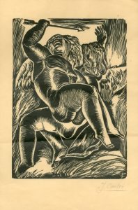 CANTRE (Jozef). Sans titre. Gravure sur bois tirée sur papier crème, monogrammée dans la planche, signée "J. Cantré" au crayon et montée sous passe-partout et cadre en bois. Dim. cadre : 42 x 32 cm ; sujet : 23 x 17 cm.