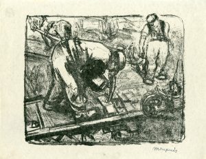 menu. Format : de 5 x 6 cm à 23 x 17 cm. Joint : Almanach de l'Université de Gand (comprenant plusieurs lithographies de Maurice Dupuis) et la plaquette de l'exposition "Maurice Dupuis" au Musée des Beaux-Arts de Gand en 1952. Comme graveur, Maurice Dupuis marque une prédilection pour les scènes de carnaval, les personnages, les nus et les scènes de rue. Des critiques d'art ont parfois comparé son oeuvre à celle de Chardin, Corot ou Evenepoel.