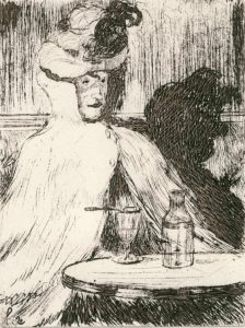 EVENEPOEL (Henri). "La Buveuse d'absinthe" et "La Parisienne" (1899). Ensemble de 2 gravures tirées sur papier vélin, monogrammées dans la planche et montées sous passe-partout. Retirages. Dim. sujet : 12,5 x 9,5 cm et 14 x 10 cm.