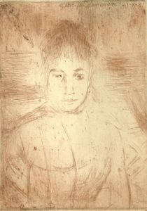 LEMMEN (Georges). "Jeune femme en buste" (1887). Pointe sèche et brunissoir tirée sur papier crème, datée, signée dans la planche et montée sous passe-partout et cadre doré en bois. Retirage. Dim. cadre : 40 x 30 cm ; sujet : 16 x 11,5 cm...