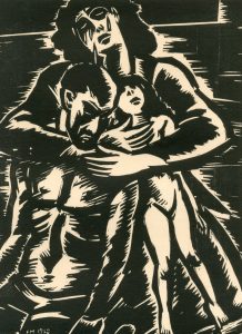 MASEREEL (Frans). "Pietà" (1948). Gravure sur bois tirée sur vélin crème, titrée, just. 4/25, datée, signée et dédicacée au crayon à Paul Eeckhout [architecte et conservateur du Musée des Beaux-Arts de Gand, 1917-2012]. Dim. support : 48 x...