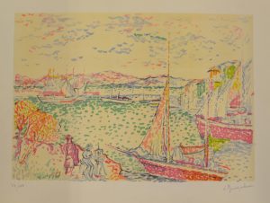 NEUQUELMAN (Lucien). "Le Port de Saint-Tropez". Lithographie en couleurs tirée sur vélin d'Arches, just. 38/100 et signée au crayon. Dim. support : 49 x 63 cm ; sujet : 35 x 50 cm.