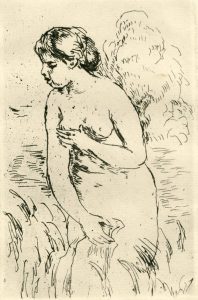 RENOIR (Auguste). "Baigneuse debout à mi-jambes" (1906). Eau-forte en noir tirée sur vergé ivoire à petites marges. Retirage. Dim. support : 22 x 16,5 cm ; sujet : 16,5 x 11 cm (Delteil, 23).