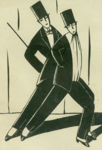 VERHAEGEN (Fernand). "Two Steps" (ca 1925). Xylographie tirée sur papier crème, signée au crayon, et montée sous cadre mouluré en bois. Dim. cadre : 45 x 35 cm ; sujet : 24,5 x 18,5 cm. Peintre et graveur, Fernand Verhaegen (1883-1975) a été...