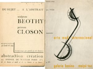 l'abstrait. Sculpture : Beothy. Peinture : Closon. Exposition. P., Abstraction Création, (1934), 1 f. dépl.de 40 x 28 cm (taches d'encre). Etienne Béothy (1897-1961) est le membre fondateur et vice président du groupe Abstraction-Création de 1932 à 1936./ Ens. 2 pièces.
