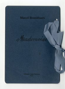 BROODTHAERS (Marcel). Mademoise. P., Gillespie Laage Salomon ; Brux., Impr. Malvaux, 1986, 8°, sous la forme d'un cahier d'écolier, assemblé par un ruban de faveur. Première édition intégrale, tirée en fac-similé à 300 ex., du manuscrit...