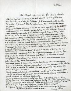 CAILLE (Pierre). Lettre ms. adressée au sculpteur belge Florent Welles. 1 f. 4° de 33 lignes. Dans cette lettre datée "le 24 sept.", Pierre Caille évoque son séjour à la côte "J'ai passé de bonnes vacances à la Mer du Nord au soleil et à...