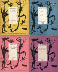 N° 20. ARP (Hans) et HUIDOBRO (Vicente). Trois nouvelles exemplaires.- N° 22. DEHARME (Lise). Insolence.- N° 24. HENRY (Maurice). Les Paupières de verre.- N° 29. PIQUERAY (M. et G.). Les Poudres lourdes.- N° 30. PENROSE (Valentine). Martha's Opera.- N° 31. PERET (Benjamin). Dernier malheur. Dernière chance.- N° 32. DECAUNES (Luc). La Source oreille.- N° 36. BÜCHNER (Georg). Lenz.- N° 37. LALOUX (François). La Femme sans peau.- N° 38. DOMINGUEZ (Oscar). Les Deux qui se croisent.- N° 39. LEAR (Edward). Deux histoires ineptes.- N° 40. WALDBERG (Patrick). Sur le bord.- N° 41. BAY (André). Amor.- N° 46. JARRY (Alfred). L'Autre Alceste.