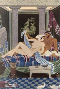 tête rouge, couv. et dos cons. (pet. épidermures). Texte encadré en haut et en bas d'une grecque en sépia, lettrines et culs-de-lampe. 48 illustrations hors texte en couleurs gravées sur cuivre et imprimées dans les ateliers de Draeger frères. Tiré à 1200 ex. num. 1/1100 vélin de Rives.