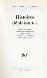 DRIEU LA ROCHELLE (Pierre). Histoires déplaisantes. P., NRF, 1963, 8°, 256 p., br. Edit. orig. 1/40 ex. num. sur vélin pur fil, seul grand papier.