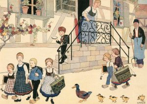 HANSI (Jean-Jacques Waltz, dit). Mon village. Ceux qui n'oublient pas. Images et commentaires par l'oncle Hansi. P., Floury, [1913], in-4° oblong, [2]-31-[4] p., illustrations en couleurs dans le texte, la plupart à pleine page, toile bleue...