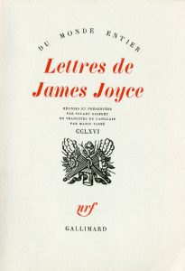 JOYCE (James). Lettres réunies et présentées pat St. Gilbert et traduites de l'anglais par M. Tadié. P., Gallimard, "Du monde entier", 1961, 8°, br., non coupé (petite trace de pli au coin infér. du 1er plat de couv.). Edit. orig. 1/47 ex....