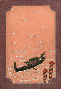 brou de noix à encadrement, dos lisse titré en long, tête et coupes dorées, plats décorés, mosaïqués et peints de charmantes vues vénitiennes, contreplats bordés du même cuir brun ornés de filets dorés continus ou perlés et fleuronnés dans les coins, gardes moirées lilas, chemise et étui cartonnés (frottés) recouverts de papier fantaisie (reliure signée de A. Taffin). Tirage limité à 120 ex. num. Bel exemplaire.