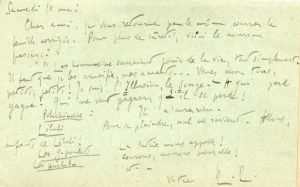 Edit. orig. tirée à 800 ex. num. Ex. d'auteur sur Ingres d'Arches, justifié 3/3. Ex. enrichi d'un envoi au vicomte Carlow et de 4 cartes postales (cartes montées sur onglet et reliées dans 1 cartonnage de Sangorski et Sutcliffe, titré en anglais au plat supér.). Ces 4 cartes mss de l'auteur, toutes relatives à l'oeuvre Liluli, sont adressées à René Arcos, fondateur en 1918 des Editions du Sablier et cofondateur avec Romain Rolland de la revue Europe. "Cher ami, je reçois le 1er ex. Ca me parait / très réussi./ Je regrette que Frans [Masereel] n'ait pas mis le beau dessin / du décor, en tête de l'oeuvre. Il avait grand caractère / et eût fixé l'esprit du lecteur (...)". C'est en pleine Première guerre mondiale, que Romain Rolland écrit Liluli, une farce satirique qui met en scène des guignols grimaçants englués dans la guerre, deux princes de contes qui s'entretuent pour les beaux yeux d'une déesse, métaphore de la France et de l'Allemagne qui s'étripent pour la conquête de l'Alsace-Lorraine. C'est une oeuvre d'amertume aux accents douloureux dont Stefan Zweig dit qu'elle "dégage une ironie tragique dont Rolland se sert comme d'une arme défensive contre sa propre émotion".