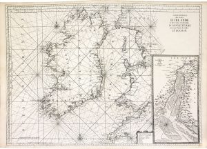Seconde édition française du Neptune, selon Mireille Pastoureau, contenant un frontispice, une planche d'échelle et 29 cartes.Le Neptune est une entreprise officielle initiée par Colbert à laquelle collaborèrent les mathématiciens et astronomes de l’Académie des sciences et les ingénieurs hydrographes de la Marine. Les deux principaux maîtres d’œuvre furent Sauveur, maître de mathématiques des enfants royaux et membre de l’Académie des sciences, et Chazelles, ingénieur de la Marine et membre de ladite académie.Une première édition vit le jour en 1693, contrefaite en cette même année par Pieter Mortier en trois versions (française, anglaise et hollandaise). En 1751, Rouillé fit racheter les planches, devenues rares, du Neptune, les confia au Dépôt des cartes et plans de la Marine afin qu’elles fussent remises en état, corrigées et complétées en vue d’une réimpression [1753]. Deux cartes manquaient, Entrées de la Meuse et de l’Escaut [n°7], et Côtes occidentales d’Irlande [n°11], qui furent refaites au modèle de celles de 1693. La grande correction apportée aux cartes par les hydrographes du Dépôt de la Marine fut de faire partir la graduation des longitudes du méridien de Paris et non de l’île de Fer, tout en faisant figurer celles de Londres, de l’île de Fer, du pic de Ténérife et du cap Lézard.Cette réédition fut accompagnée d’un Examen critique de l’ingénieur hydrographe Jacques-Nicolas Bellin, après avoir reçu l’approbation de l’Académie de Marine.Les cartes sont montées sur onglets, la n°13 est en deux parties.Manque la moitié gauche de la carte des Costes septentrionales d'Espagne depuis Fontarabie jusqu'à Bayonne en Gallice. Reliure usagée : mouillures et tâches sombres aux plats, importantes épidermures avec manques, importants manques au dos.M. Pastoureau, 355-356, C – Polak, n°602 (collation erronée).